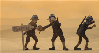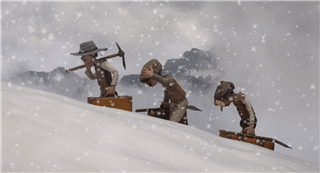 Die Herausforderung bei der Erstellung des Sandsturms war vor allem die ungleichmäßige Vertreilung der Partikel im Wind. Außerdem die Interaktion der Teilchen mit den Protagonisten.